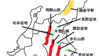 中学生【中2地理】中部地方の一問一答問題と記述問題:テストによく出るポイントを徹底解説 中学社会地理の「中部地方」の範囲で、定期テストによく出てくる問題を一問一答形式でまとめました。白川郷・五箇山の合掌造り集落は何県と何県か、高原野菜・レタス/キャベツ・抑制栽培、水田単作地帯、日本アルプスの覚え方、お茶の生産量日本1、2位、お米の生産量日本1、2位、四大公害病の場所と病名など、全部で46問です。 2023.07.24中学生