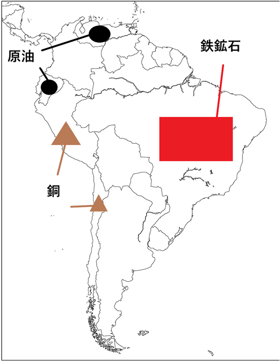 | 資源・工業 | 鉄鉱石(ブラジル)、銅(チリ)、石油(ベネズエラ) | 「てっチリせき」でセット暗記! |