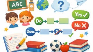 中学生中学英語|一般動詞の疑問文のつくりかたを中1レベルで完全解説【例文・練習問題つき】 中学生向けに、英文法の基本である「一般動詞の疑問文の作り方」について説明しました。「Do/ Does」+「主語」の順番で書き、最後にクエスチョンマークをつけます。英検5級や中1の定期テストでも重要な範囲です。例文と練習問題を通じて実践的なスキルを身につけ、自信を持って英語を使えるようになりましょう。 2024.11.02中学生